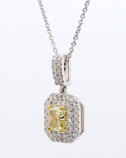 Fancy Yellow Cushion Diamond Double Halo pendant 1.32 Carat