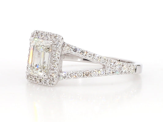White Emerald cut Diamond Halo Ring 1.57 Carat