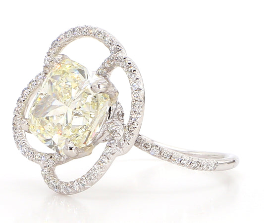 Fancy Light Yellow Cushion Flower Diamond Ring 5.50 Carat