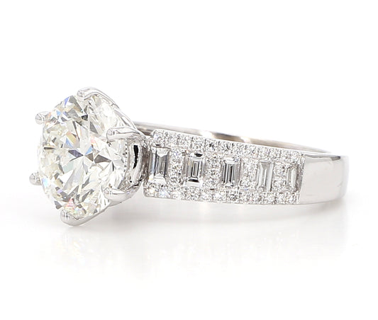 Regular price $53,899.00Regular priceUnit price / perSale price $53,899.00Round Brilliant cut Ring expertly crafted in 18k White Gold. The center stone weighing 3.0 carats and certified by GIA features a beautiful H-I color with VS2 clarity. This piece is elegantly complemented by 0.39 carats of Tapered Baguette cut side stones with G-H Color & VS clarity. Perfect for special occasions and a timeless addition to any collection.