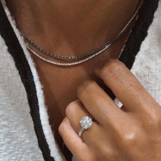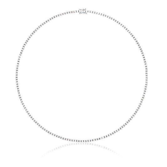 Regular price From $8,300.00Regular priceUnit price / perSale price From $8,300.00Enhance your elegant look with our Natural Diamond Tennis Necklace. Made of 8 carats of sparkling diamonds in 14k White Gold , this timeless piece will elevate any outfit. Perfect for special occasions or everyday wear, this tennis necklace exudes sophistication and luxury.