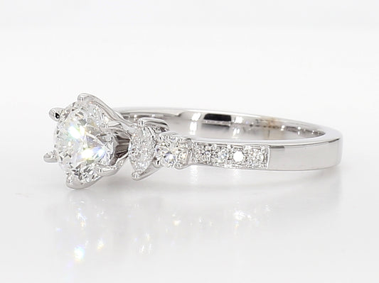 White Diamond Marquise and Round Engagment Ring 1.01 Carat