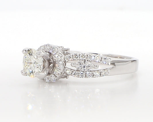 Regular price $3,945.00Regular priceUnit price / perSale price $3,945.00Round Brilliant cut Ring expertly crafted in 18k White Gold. The center stone weighing 0.53 carats and features a beautiful G-H color with VS-SI Clarity. This piece is elegantly complemented by 0.48 carats of Marquise & Round cut side stones G-H Color & SI Clarity. Perfect for special occasions and a timeless addition to any collection.