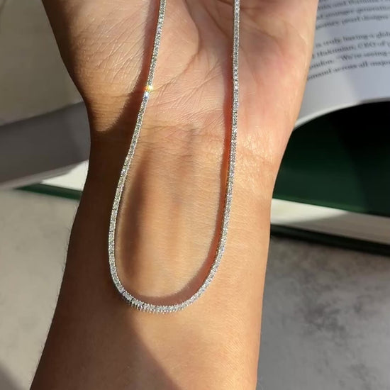 Enhance your elegant look with our Natural Diamond Tennis Necklace. Made of 2.80 carats of sparkling Natural diamonds Available in 14k & 18k  White or Yellow Gold , this timeless piece will elevate any outfit. Perfect for special occasions or everyday wear, this tennis necklace exudes sophistication and luxury.